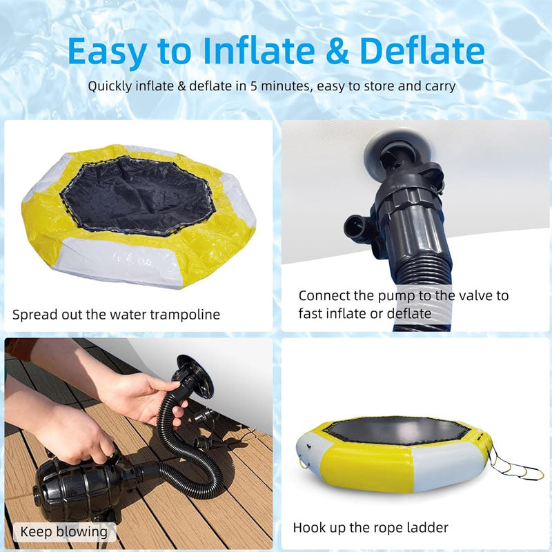 12FT Trampolines Inflatable Water Trampoline with 4-Step Ladder & Electric Air Pump for Pool Lake Calm Sea