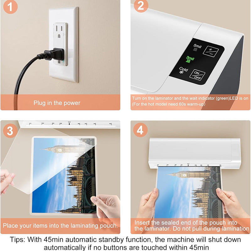 Our personal laminator warms up in just 60s, saving you waiting time and improving your work efficiency all while operating quietly to avoid disturbing others.