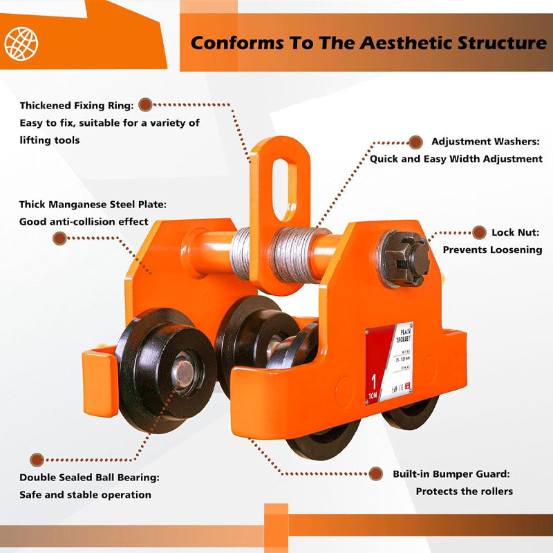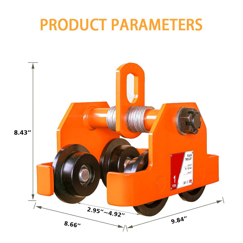 2. The beam trolley is made of high-quality low-carbon alloy steel and has a maximum lifting capacity of 1T/(2200LBS), making heavy-duty work a good process.