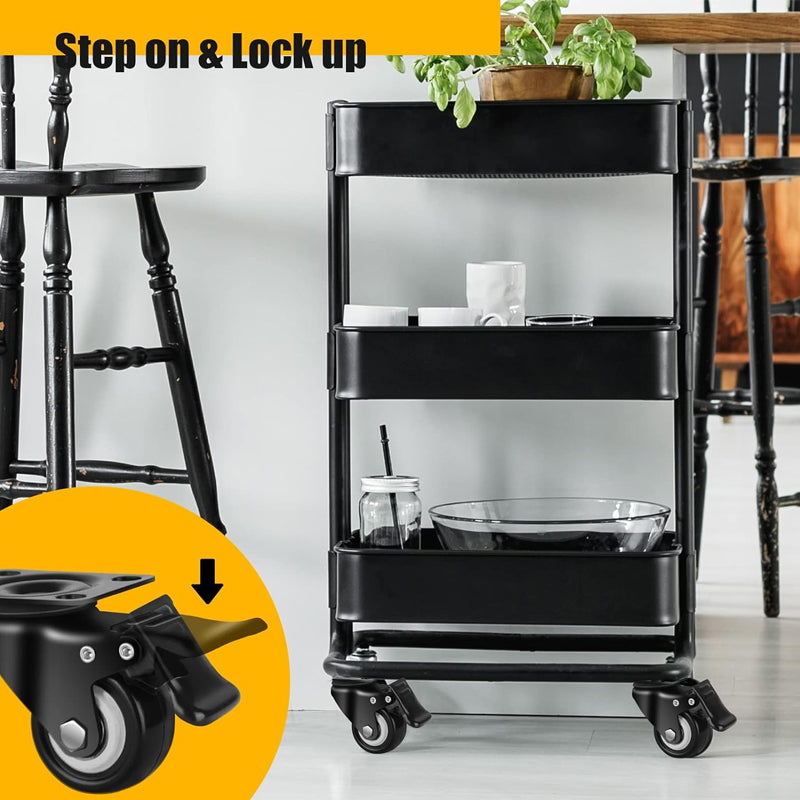 Casters with wheel brake apply pressure to the wheel to stop movement with a press of the foot pedal.