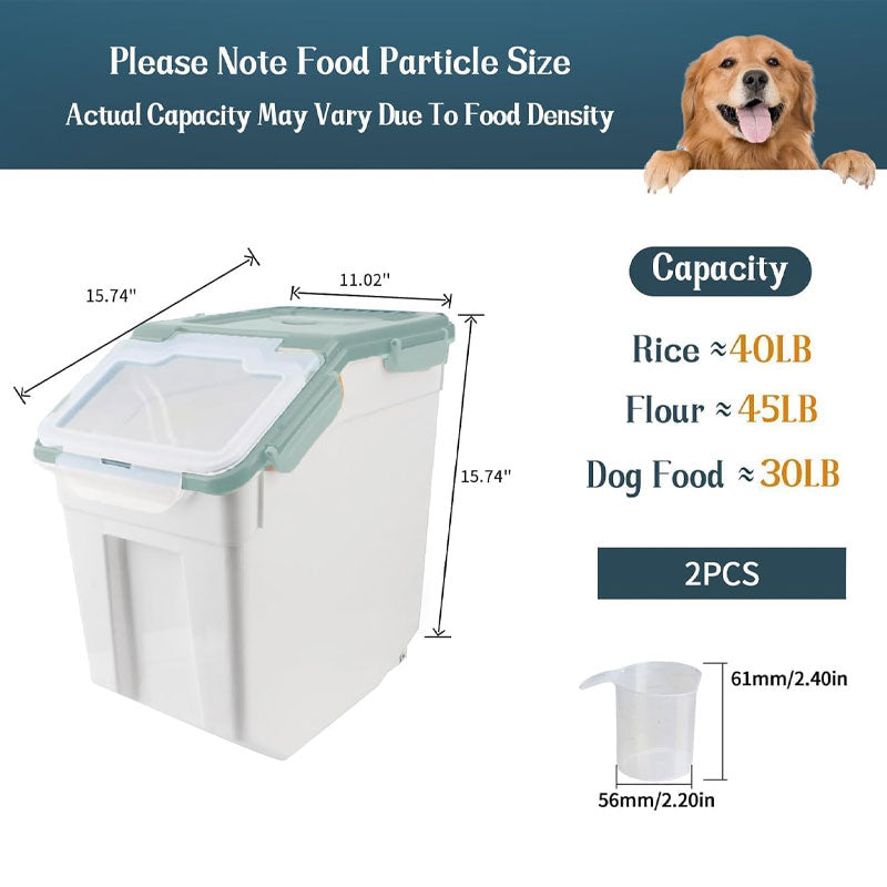 2 Pack Large Flour Storage Containers 50 Lbs Sealed Rice Storage Containers With Wheels Sealed Locking Lid For Flour, Rice, Grains