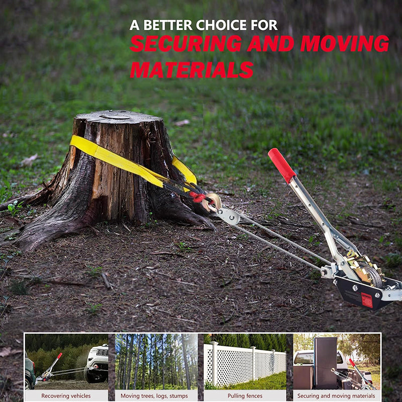making it suitable for various manual winch tasks such as road vehicle recovery, loading heavy loads unto trailers, pulling fences,logs,rocks or stumps.