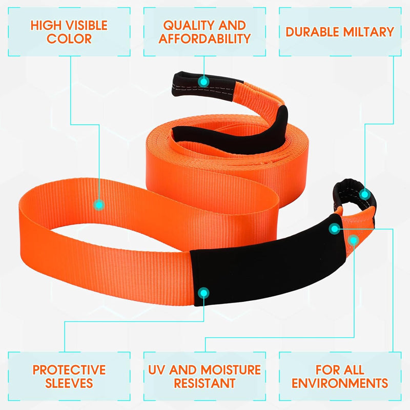 2" x 50 ft Recovery Tow Strap 20, 000 lbs Road Straps with Reinforced Loops and Protective Sleeves