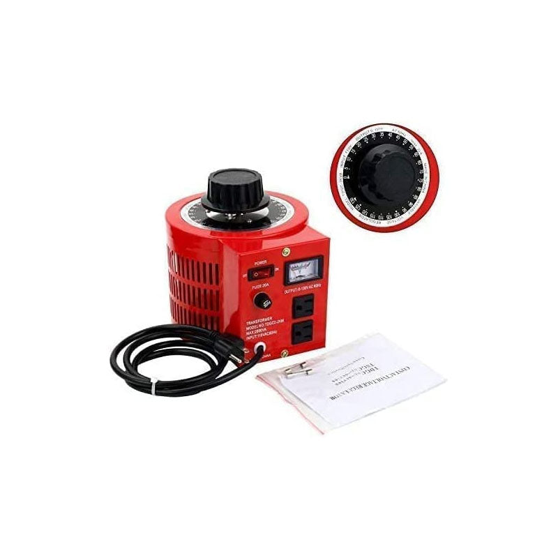 On/Off Power Switch(Lighted),20A fuse & power cord.Enclosed, non-isolated, adjustable transformer, with Output Volt Meter.Built-in copper coil, material quality, more secure and durable.Contact voltage regulator, wide voltage range (0-130V).