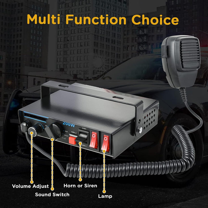 200W 9 Sound Loud Police Siren 120-150dB PA System Speaker Emergency Warning Alarm