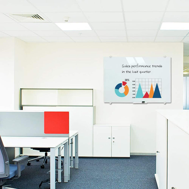 24 x 18 Inches (60 x 45 cm) Magnetic Glass Whiteboard Small Tempered Glass Dry Erase Board for Wall, Frameless Whiteboards
