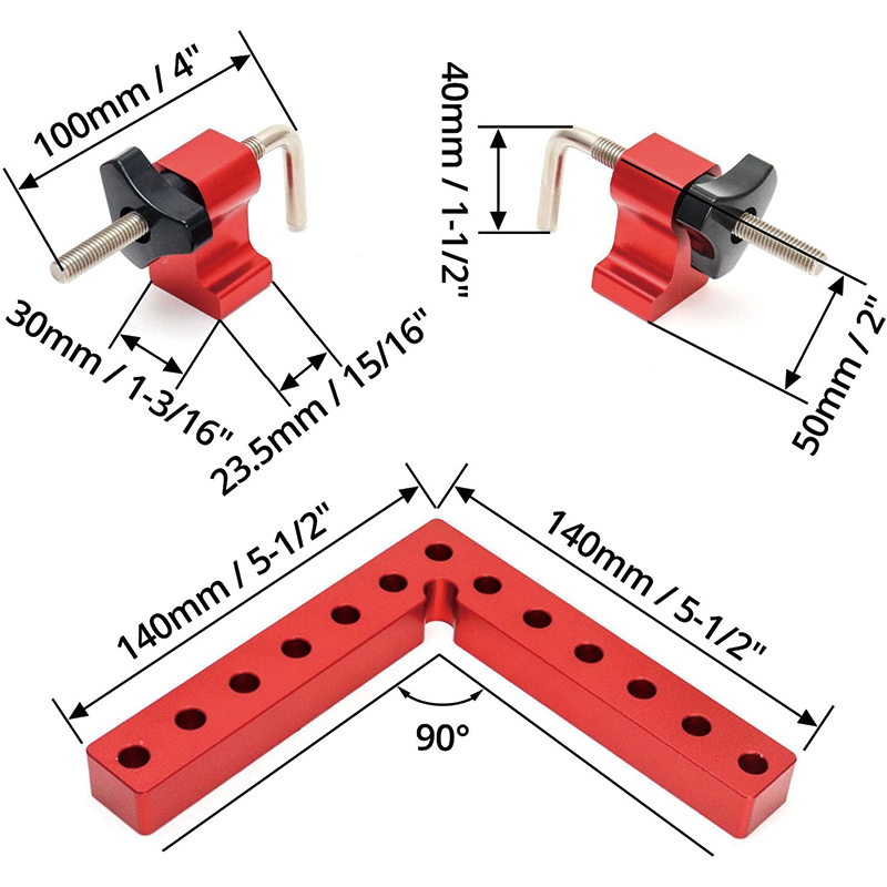 2 Pack, Size: 5.5" x 5.5", this clamps fit for the wood board thickness from 7/16" to 1- 9/16", and 90 degree angle can offer strong balance for convenient use.