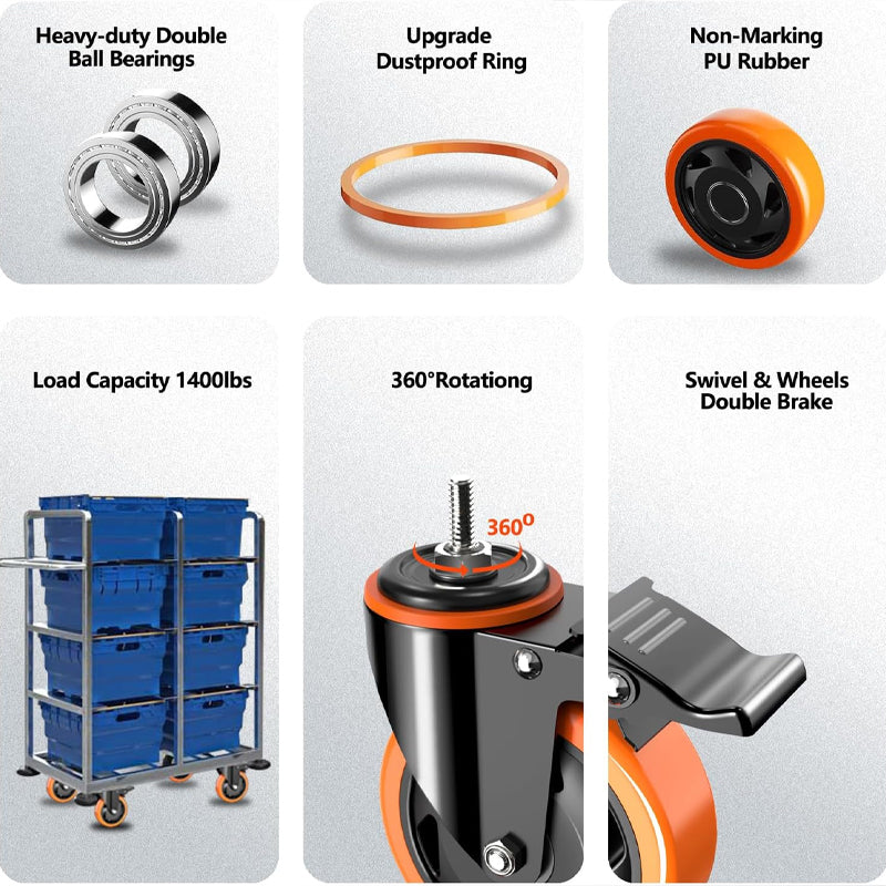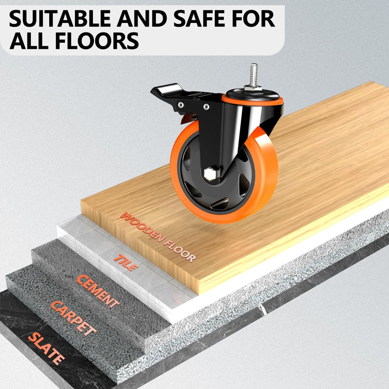 3 Inch Caster Wheels 400 lbs Capacity Threaded Stem Casters 3/8"-16 x 1" for Cart Furniture