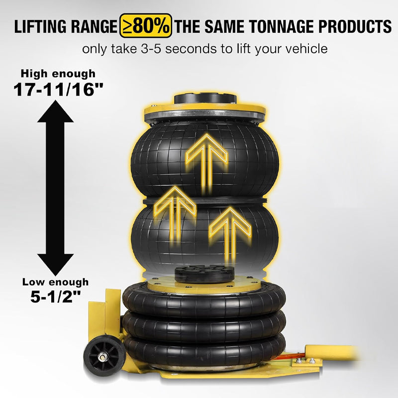 Our air bag jack has a range of 5.5-17.7 "(140 mm to 450 mm), which makes sure it fits your maintenance requirements perfectly.