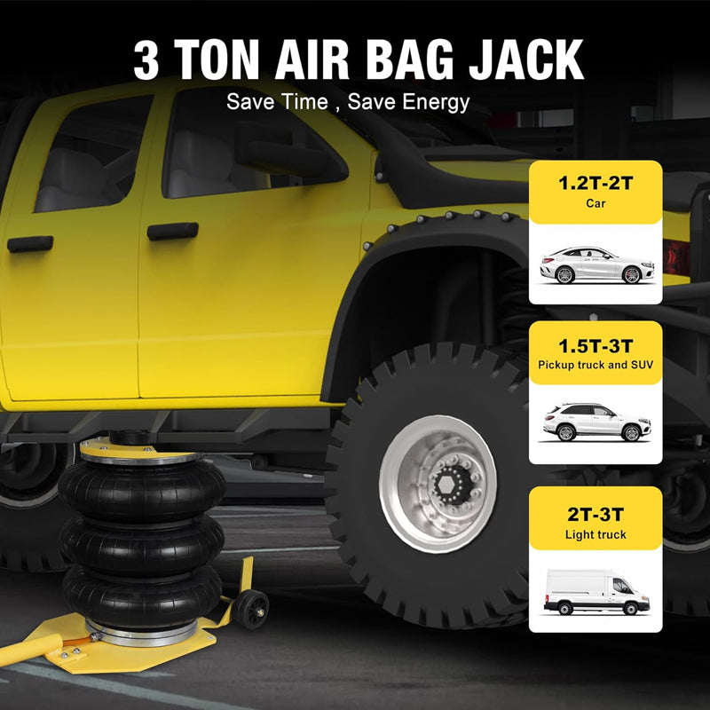 Our Air Bag Jack is equipped with an upgraded top with a thicker, non-slip rubber pad to provide a larger contact surface for a more even distribution of force.