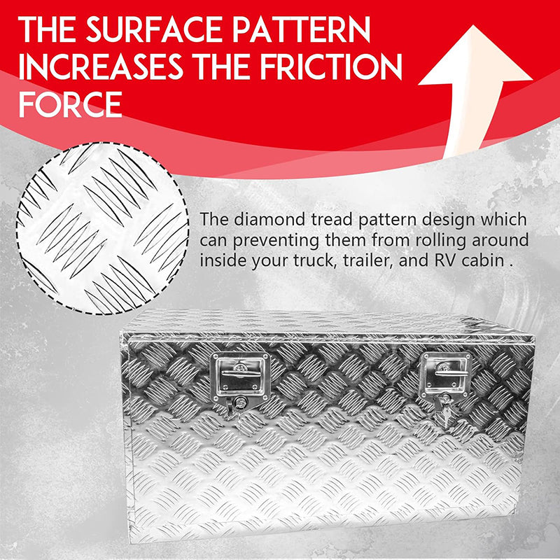 Function: Our tool box fits easily into the bed of a truck, trailer or RV, provids organized storage