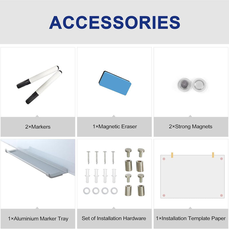 36 x 24 Inches Magnetic Glass Dry Erase Board Large Frameless Glass White Board for Office, Home & School
