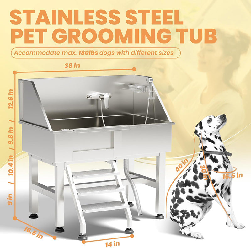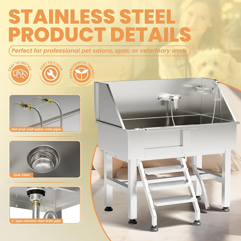 The pet tub is made of high-quality stainless steel material, durable and easy to clean.