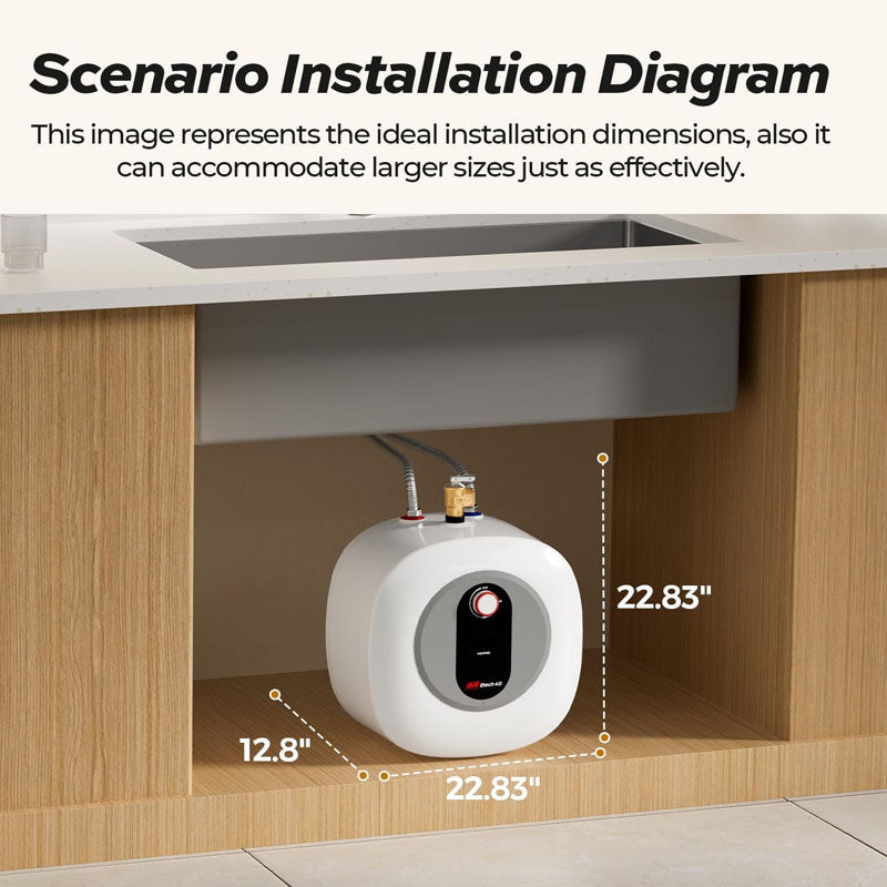 RAPID TEMPERATURE RECOVERY: Water heater can be heated with 1440W of power, the L-shaped heating rod gives it a larger heat exchange area with the water in the tank and the stainless steel is more efficient in heat transfer.