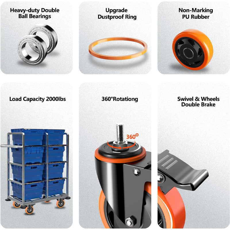 4 Inch Stem Caster Wheels 500 lbs Heavy Duty Industrial Casters No Noise Swivel Caster Wheels