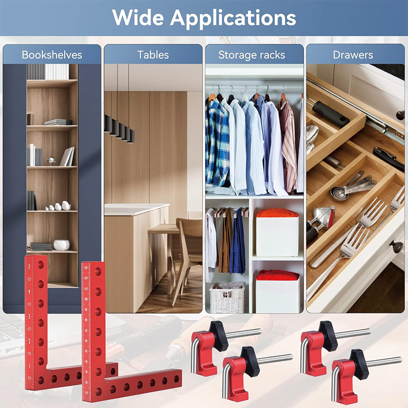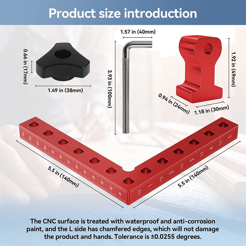 4 Pack 90 Degree Positioning Squares, 5.5"x 5.5" Aluminum Alloy Woodworking Corner Clamps with 4 Clamps & Gaskets and Gloves