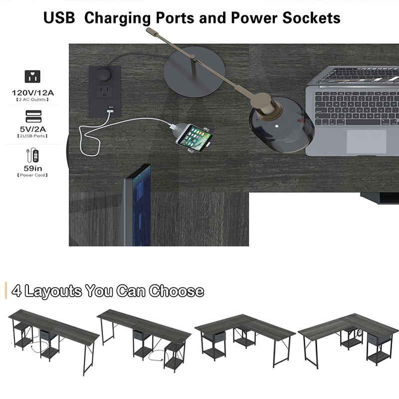 56 Inch Corner Desk L Shaped Computer Desk with Drawers Work Desk Gaming Desk for Home Office