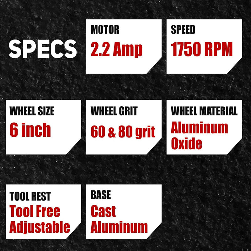 VARIABLE GRINDING: Includs a 60-grit Brown Aluminum Oxide Wheel and an 80-grit White Aluminum Oxide Wheel, suitable for grinding various materials