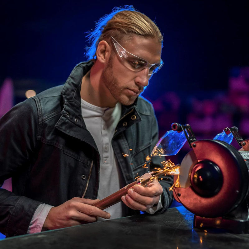 SECURITY FUNCTION: The bench grinder equipped with transparent eye shield to prevent damage to your eyes, and the spark arrestor can effectively block most of the sparks generated during grinding
