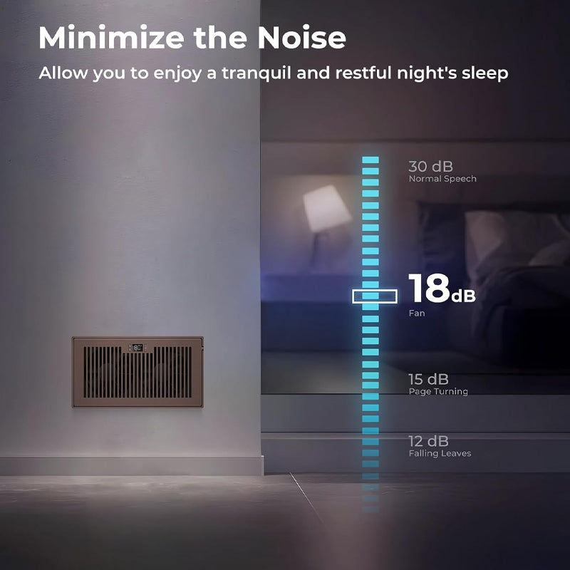 The high-static-pressure PWM motor ensures efficiency (up to 200 CFM airflow) while minimizing noise (as low as 18 dBA).