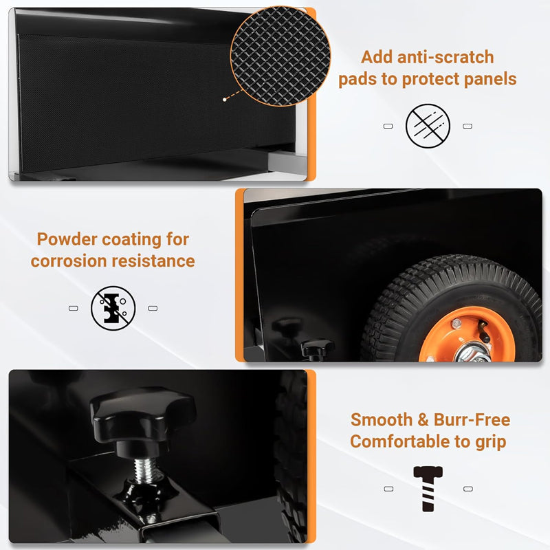 This all terrain dolly is made of high-strength and durable alloy steel, which is painted to resist wear and corrosion.