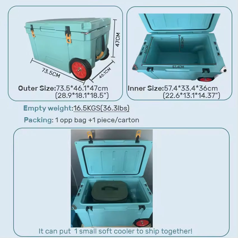 65Qt Short Travel Keep Cold Portable Ice Chest Box Camping Fishing Rotomolded Coolers Box With Wheels For Picnic