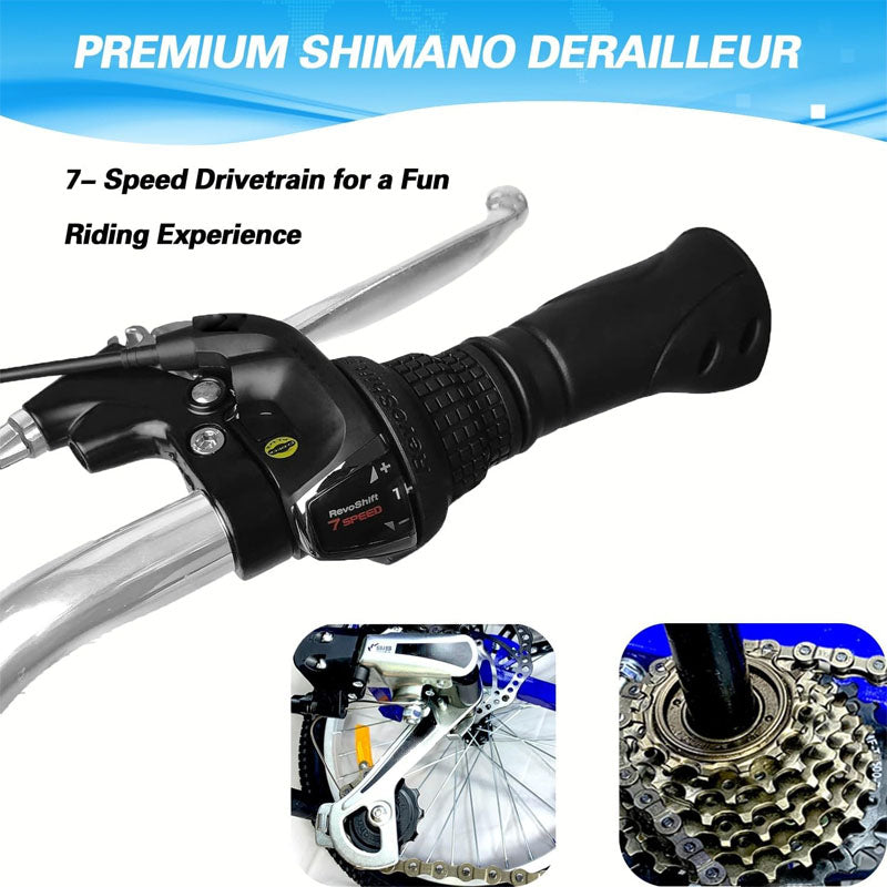 three wheel bikes: widened and thicker seat,spring shock absorber front fork,Front and rear disc brakes,Equipped with a 7-speed variable for easier riding,suitable for all kinds of roads.