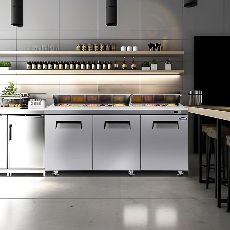 Additional refrigerated space beneath the workspace is ideal for storing backup ingredients like deli meat, cheese, and less-common toppings.
