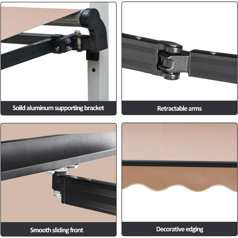Our awning comes with all the hardware you need for installation, including brackets, screws, and anchors.