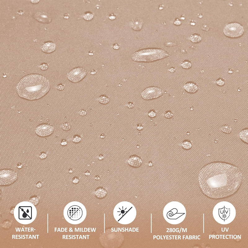 The fabric is made from high-density 280g/m² polyester with a water resistant coating, anti-UV and is also resistant to fading.
