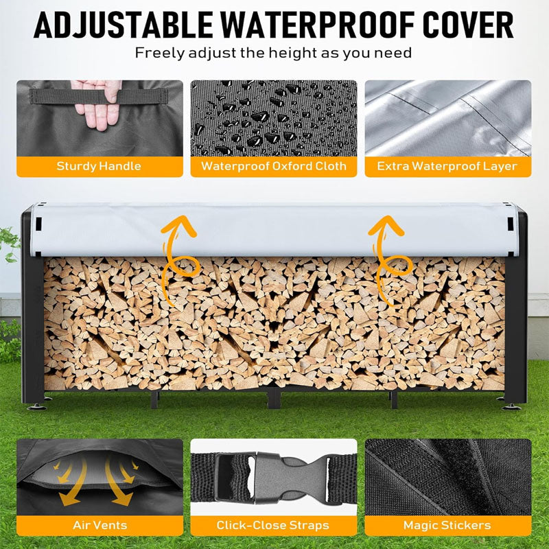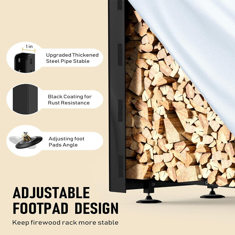 8FT Firewood Rack Indoor\outdoor Waterproof Adjustable Heavy Duty Logs Stand Stacker Holder for Fireplace Patio Deck
