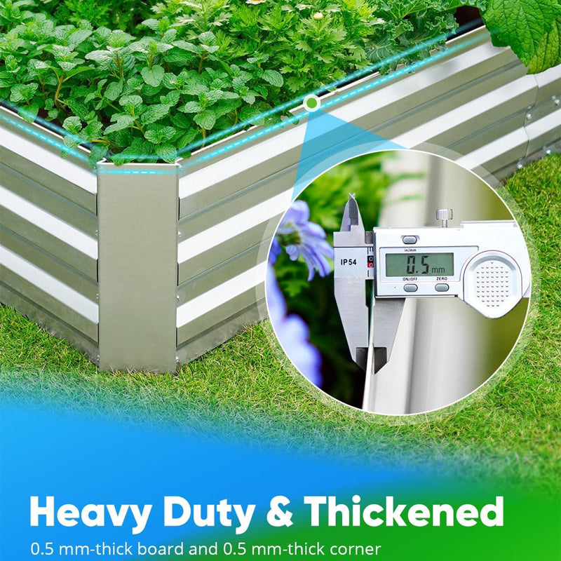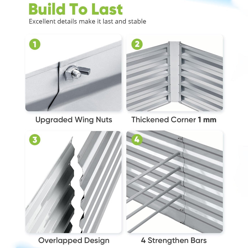 Raised garden box is made of powdered coating galvanized steel panel, assure fine condition of the metal garden bed.