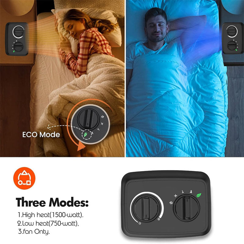 THREE MODES HEATER WITH FAN: 1. High Heat (1500-watt), 2. Low Heat(750-watt ), 3. Fan Only.