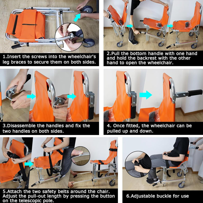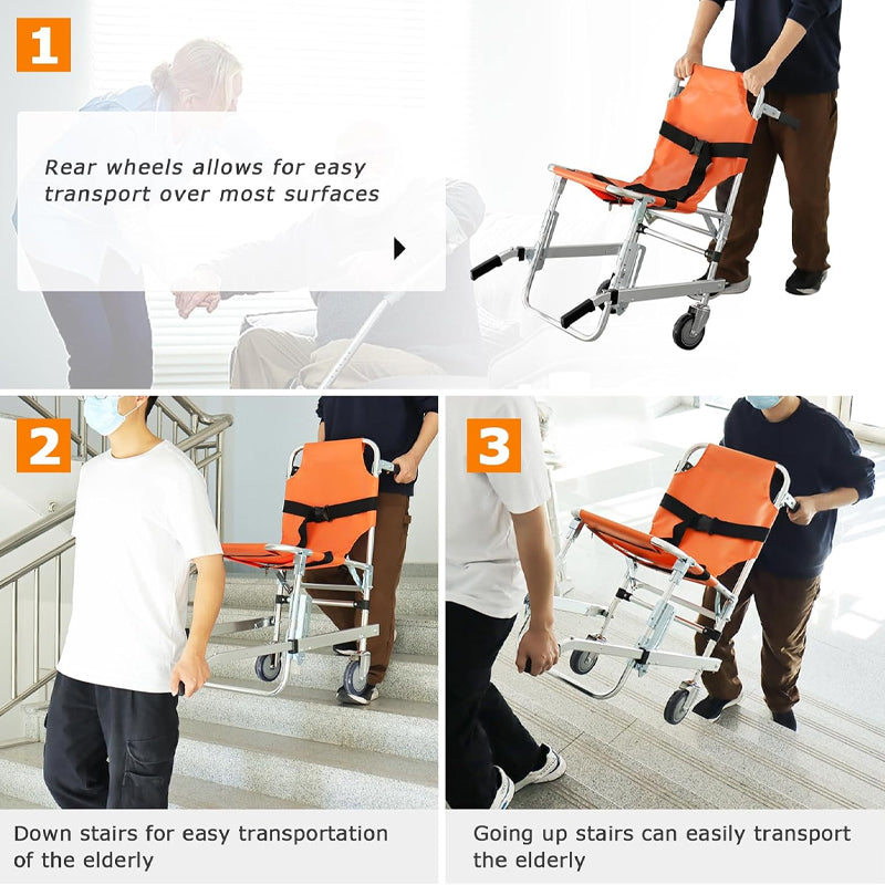 The stair chair comes with 3 adjustable quick release straps to ensure that seniors are safely secured in place and comfortable during transportation.