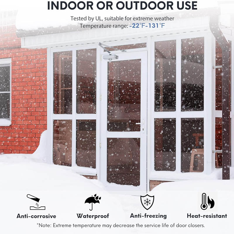SILENT CLOSING DESIGN: With this hydraulic door closer installed, you don't need to close the door deliberately every time. Adjust the speed of swinging and latching for the door as needed, and let the door auto closer help you close the door.