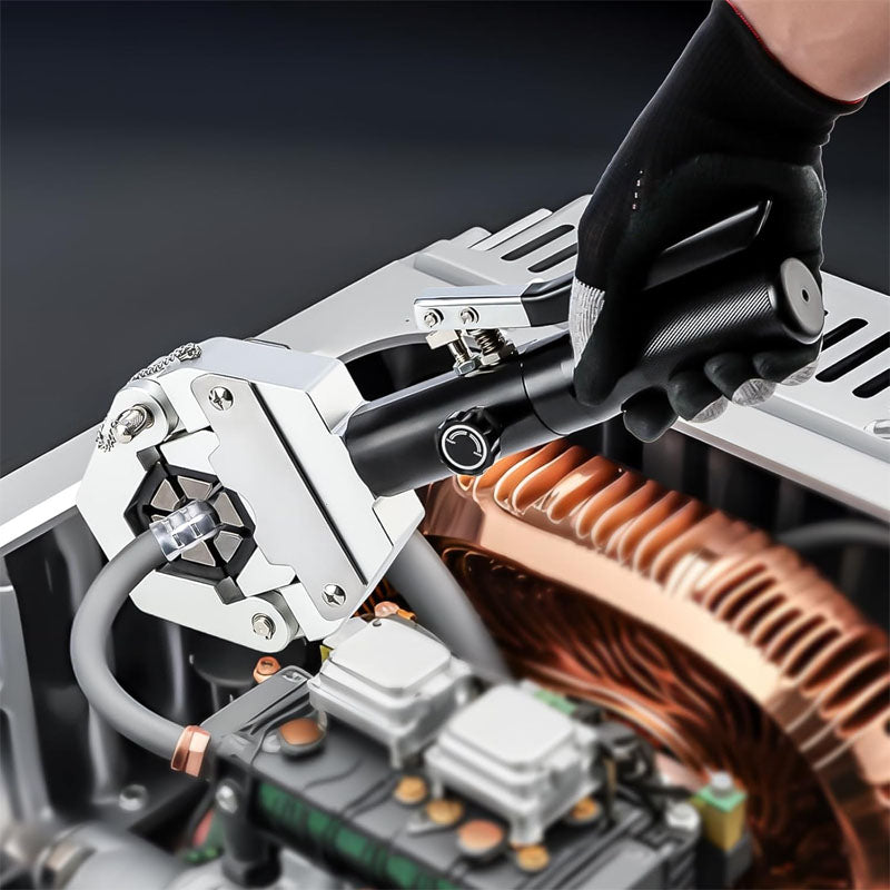 Instant Setup: Our hydraulic crimper can be installed according to the following steps: First, select the correct die to insert, insert the pin, then turn the tool's body clockwise until dies are snug against hose fitting.