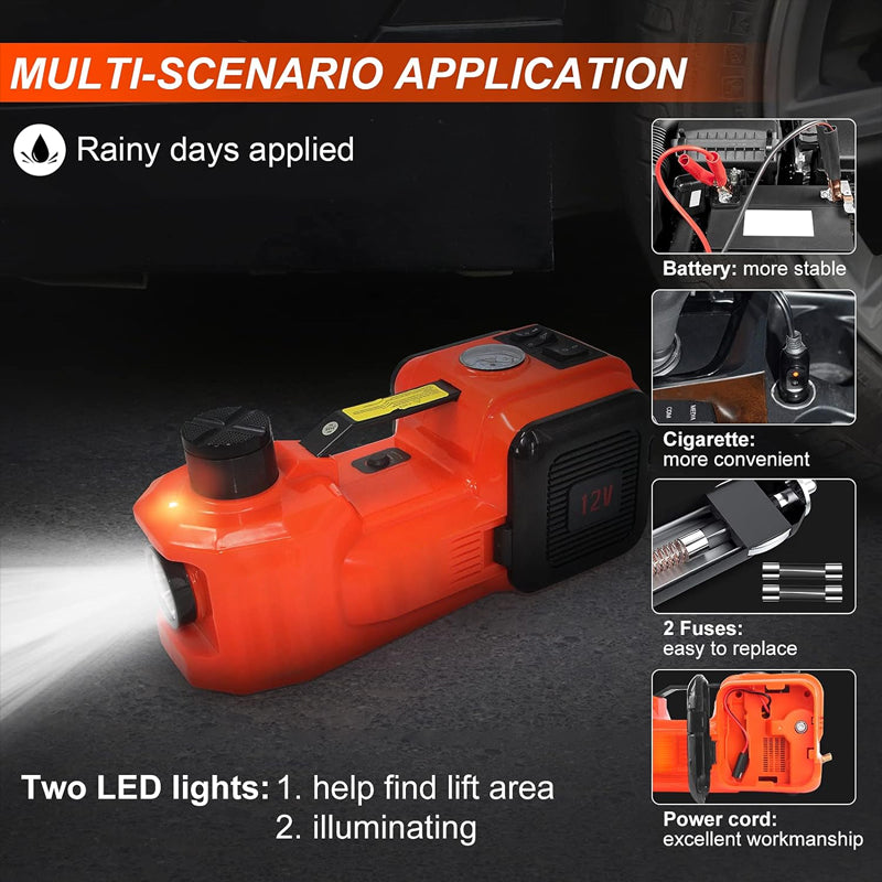 Tire pumping inflator is installed in the floor jack, equipped with tire pressure display, you are able to monitor the tire pressure easily.