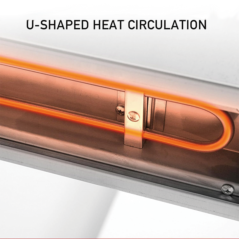 U-shaped heat circulation ensures consistent warmth. Warm light enhance visual appeal