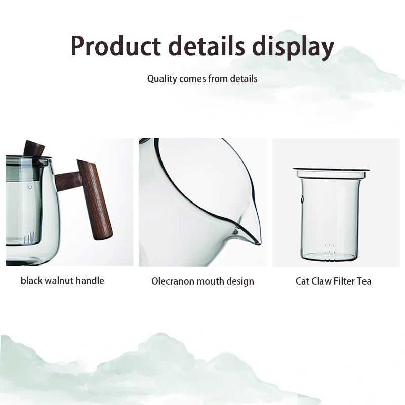 Glass Teapot, Wooden Handle Teapot, High Temperature Resistant Tea Water Separation Household Kung Fu Tea Maker Scented Tea Teapot