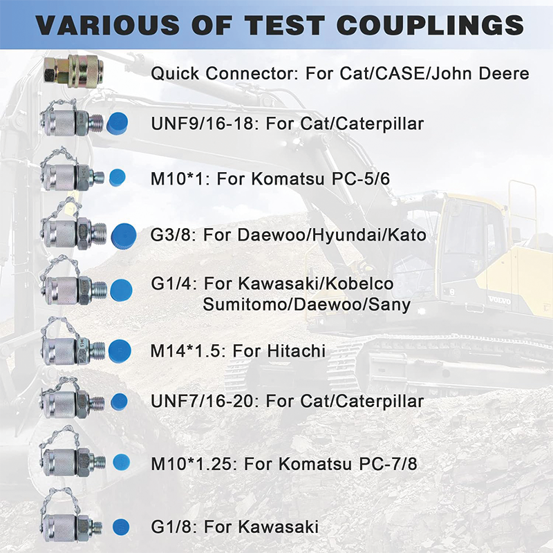 Hydraulic Pressure Test Kit,11 Couplings, 59 inch 3 Test Hoses, 3 Pressure Gauges, 1 Aluminum Box for Excavator Tractors Construction Machinery