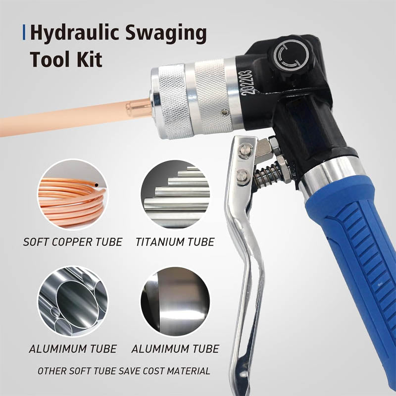 The hydraulic tubing expander is made of aluminum alloy. Light to carry.Come with handy compact carry case for convenient cary and easy organization.