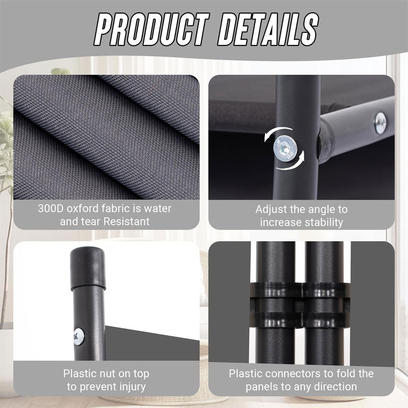 There are plastic nuts on the top to prevent injuries. The plastic connector allows the panel to be folded in any direction, which is convenient and fast for daily use.