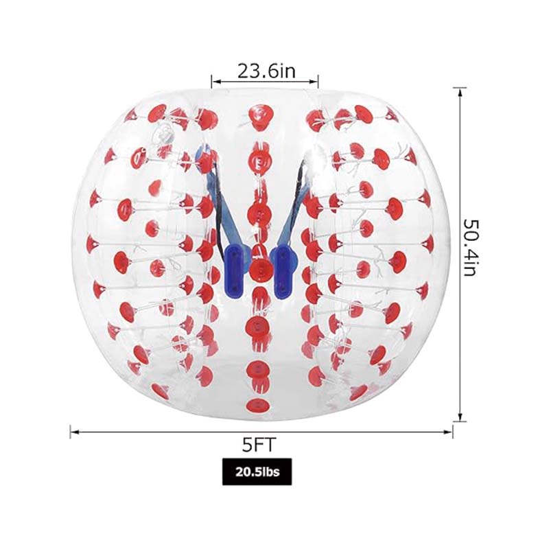 BUMPER BALL- Made of 0.8mm ultra thick PVC, non-toxic and odorless. Featured with excellent wear resistance and tear resistance. Design with 7 fasteners a row, better sealed for long-term use.