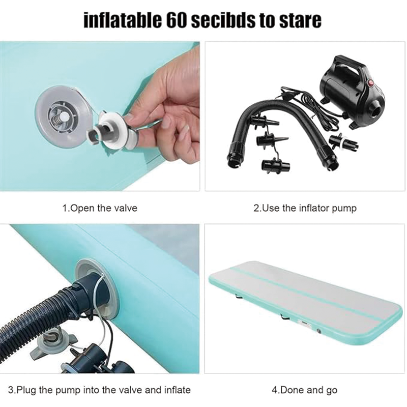 EASY TO INFLATE & DEFLATE - Compared with the traditional foam-based mats and other gymnastics Mats.The Air gymnastics training mat takes much less time to inflate and maintains the pressure for days. With the free air pump,it only needs minutes to inflate and deflate for your Air Gymnastics Mat.