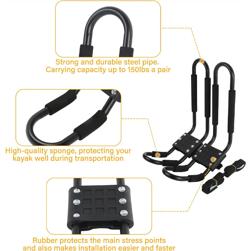 Come with 2 Pairs(4pcs) kayak rack, can hold 2 kayaks. Total load capcity up to 150 lbs.