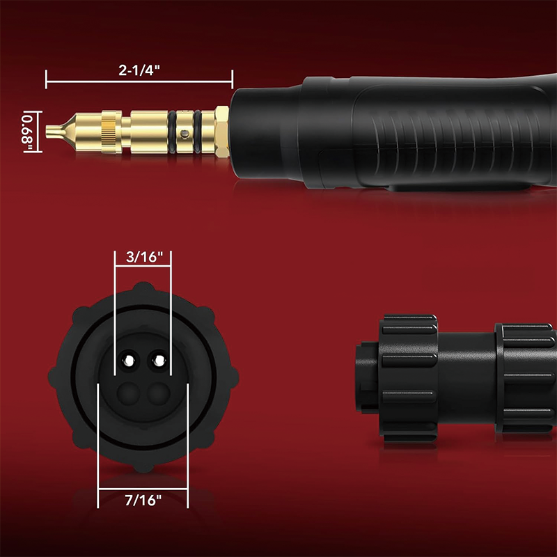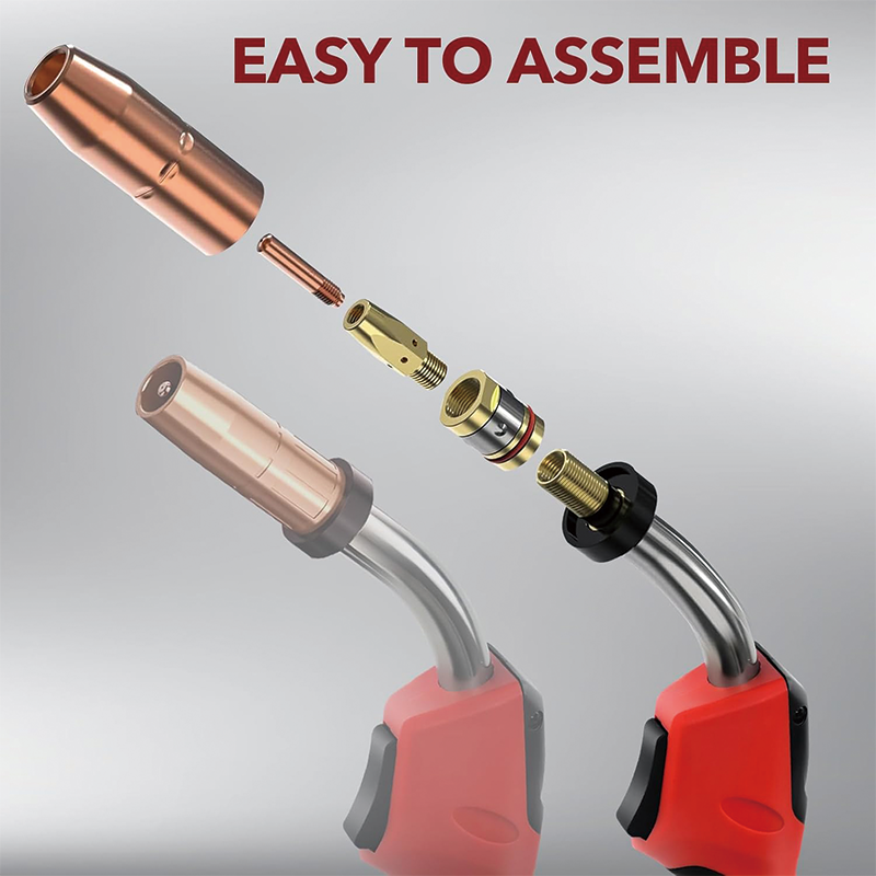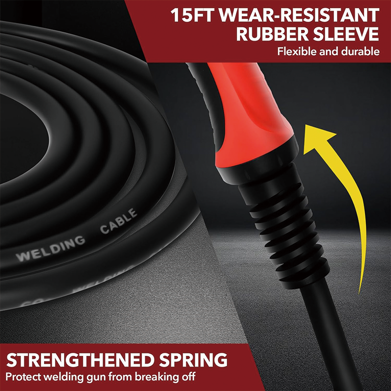The length of the welding gun torch is 15Ft/4.5m, extended length gives you the freedom to work on projects with ease, even when you need to reach those awkward angles, making your welding projects much smoother. The nozzle and contact tip are easy to replace, making maintenance a breeze.