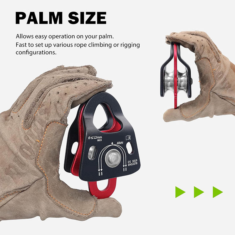 Mountaineering Twin Sheave Block 40kN Micro Double Pulley Prussian Rope Traction Ball Bearing Progressive Capture System Rigging Hauling Rescue Arborist Tree Climbing