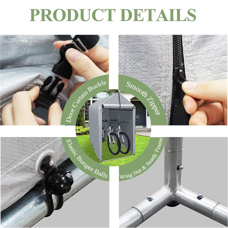 1. The frame of our bike storage shed is rust-proof and more stable. Protect your belongings with our outdoor bike storage shed.