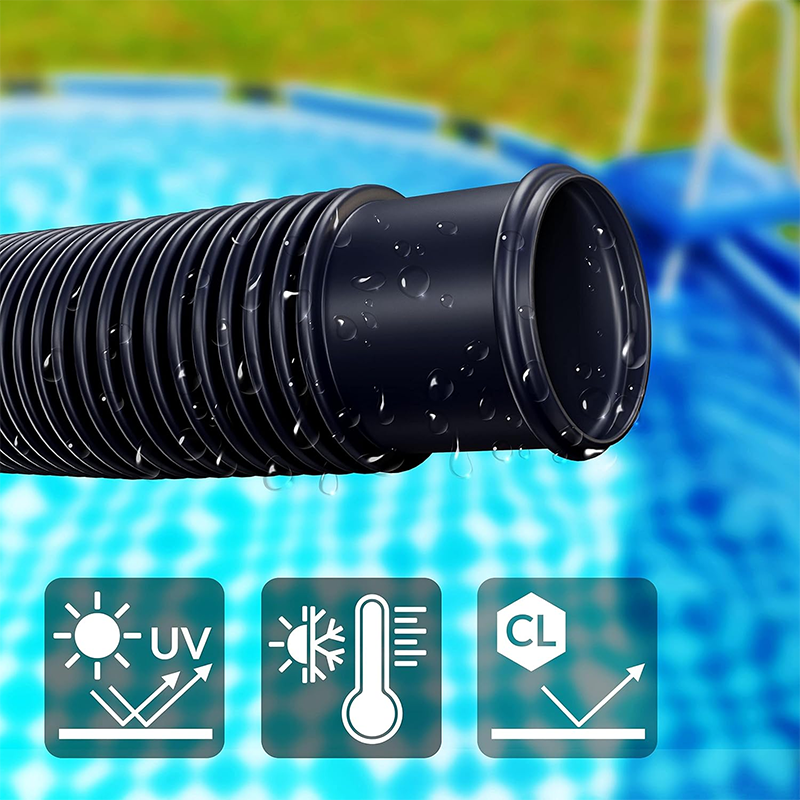 This high-quality pool hose is made of strong, non-toxic PE material, making it more resistant to chlorine, durability, stability, scratches, and tears compared to regular water hoses. Despite its strength, it remains flexible to prevent standing water and cracks.