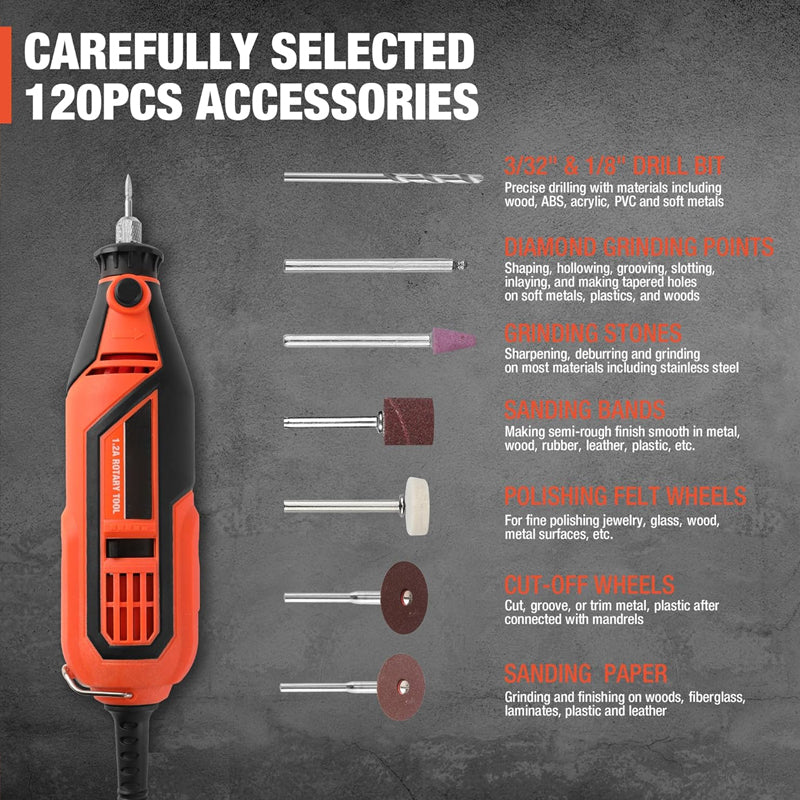 Power Rotary Tool Kit with 120 Pcs Accessories 8,000-35,000 RPM High Performance Motor